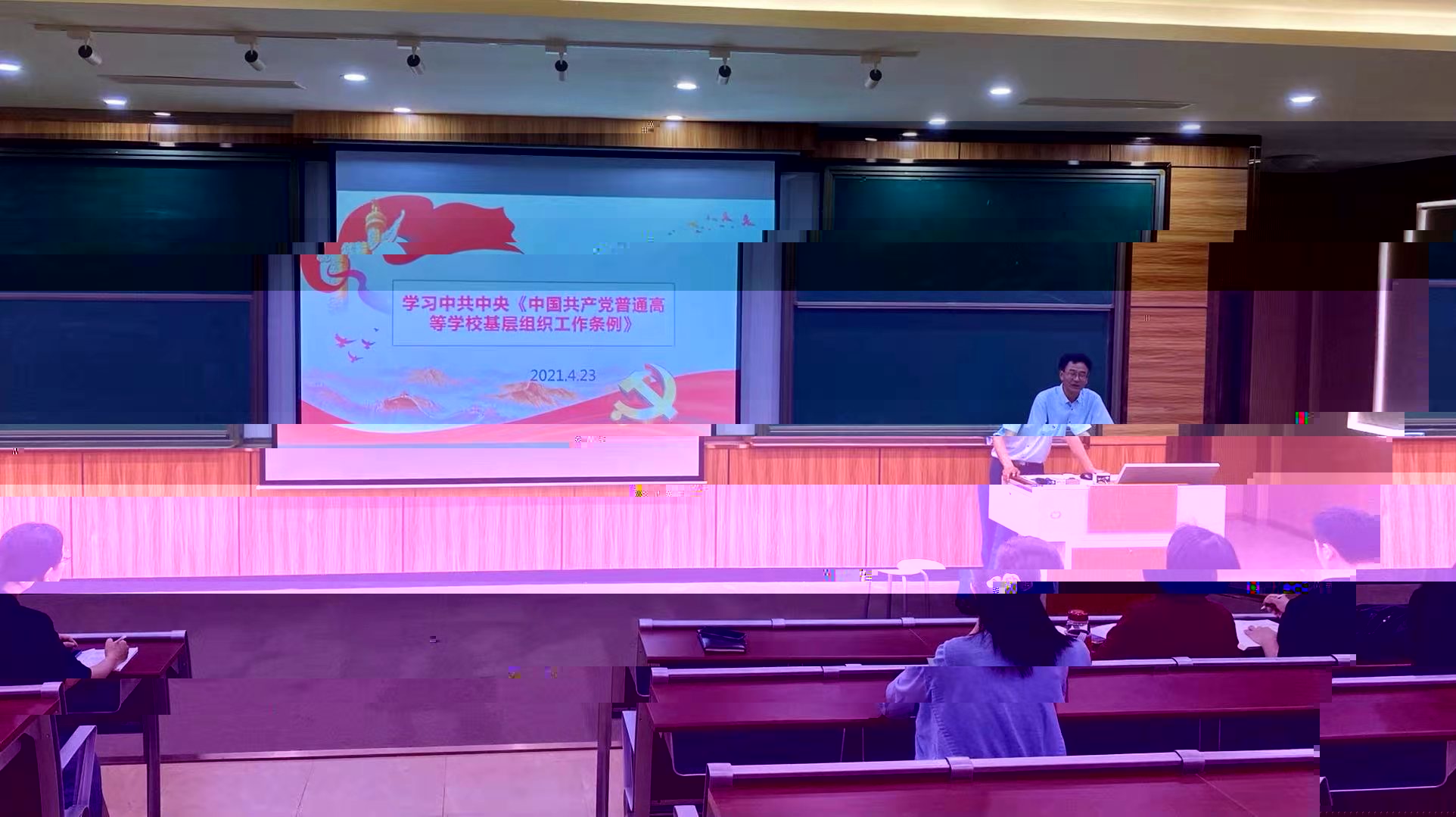 圖為韓治國在組織學習《中國共産黨普通高等學校基層組織工作條例》